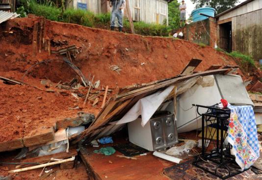 A chuva que atinge Florianópolis desde a tarde desta terça-feira segue fazendo estragos. Durante a noite um deslizamento derrubou um muro que caiu sobre uma casa que desmoronou no bairro Vila Aparecida, na região continental. Duas pessoas estavam na casa. Um homem teve ferimentos leves.