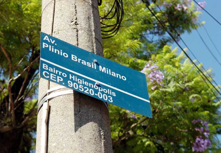 O morador de Porto Alegre que tiver como destino a Avenida Plínio Brasil Milano, no bairro Higienópolis, pode ter o seu trajeto alterado. Caso siga as placas espalhadas pela cidade, o pedestre ou motorista corre o risco de parar na Rua Brasiliano Índio de Moraes, no bairro Passo D'Areia. O desvio no caminho é influenciado por uma placa, afixada na rua errada.