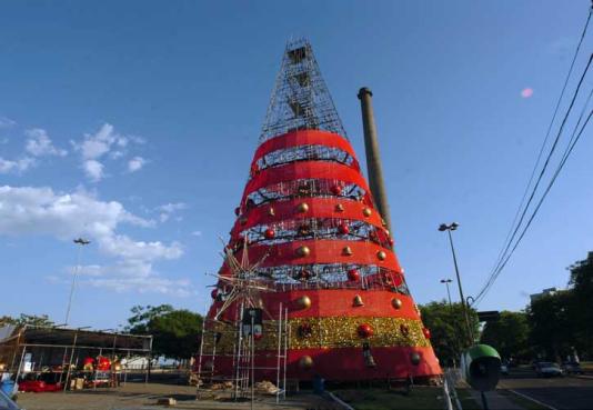 A árvore de Natal do Gasômetro, no centro de Porto Alegre, começa a ficar colorida. Nesta segunda-feira, ela apresentava os primeiros enfeites natalinos. Com 45 metros de altura e previsão para instalação de mais de 2 milhões de pontos de luz, a estrutura será inaugurada no próximo dia 13, com uma cerimônia em frente à Usina do Gasômetro.