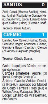 Aos 32 minutos do segundo tempo, no distante 17 de novembro de 1999, o Grêmio quebrava um tabu histórico, de jamais suplantar o Santos na Vila Belmiro. Desde então, o Tricolor deixou de repetir tal façanha. No sábado, às 19h30min, pensando no G-4, o clube terá nova chance.