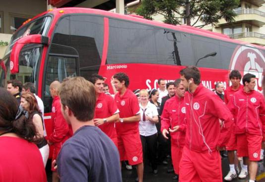 Hino do Inter no saguão e funcionários e torcedores em um corredor de aplausos para se despedir da delegação colorada. Eles deixaram Bento Gonçalves por volta das 13h30min, com o carinho da torcida e foram para Carlos Barbosa, onde disputam amistoso contra uma seleção local neste domingo, às 15h. Foram 12 dias de treinos durante a pré-temporada.