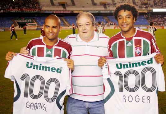 Passagem pelo Flu rendeu homenagens. Roger recebeu a camisa de 100 jogos pelo time nas oitavas da Libertadores de 2008