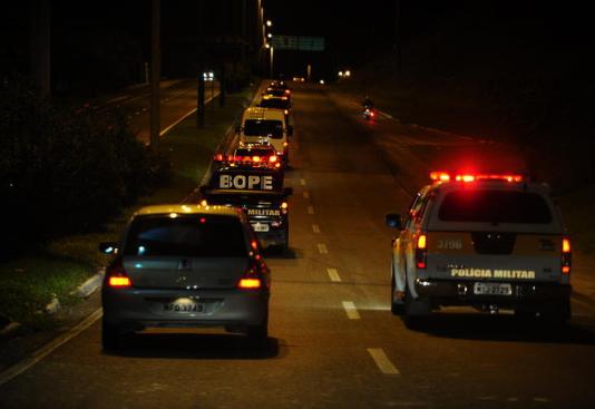 Sete carros e cinco motos acompanharam o músico e seu staff na chegada em Florianópolis