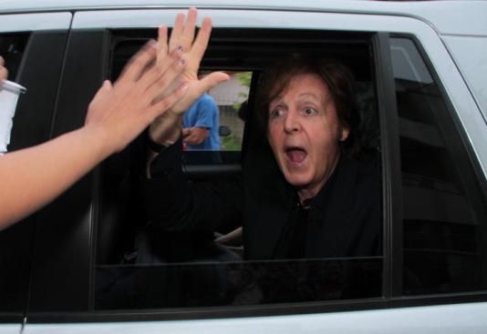 O astro surpreendeu a dezenas de moradores e alguns fãs que esperavam desde o início da tarde na saída da rua Francisco de Assis. Sem cerimônia, ele baixou o vidro traseiro da Land Rover e deu até um "oi" para o fotógrafo Júnior Careca. Em seguida, tocou a palma da mão de Andrea Mazia Barreiros, 18 anos, que havia saído de Coqueiros, Capital, de ônibus, ao meio-dia, só para tentar ver o ídolo de perto já que não poderá ir ao show. A esposa de Paul, Nancy Shewell, também quis conferir o que acontecia e baixou o vidro para olhar toda a movimentação com curiosidade.