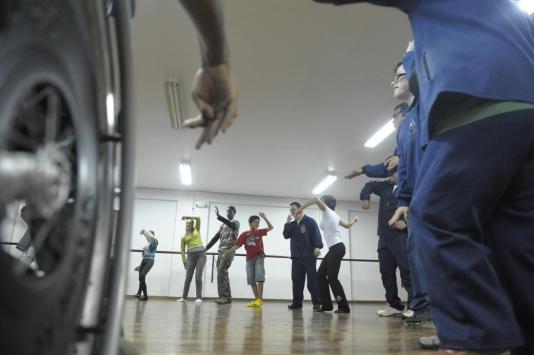 O primeiro faz um movimento e os outros, dançando, seguem. Na vez de Maicon improvar, todos batendo na palma da mão. Alguém ainda lembra qual mesmo é deficiência de Maicon? Ele não. Nem os outros colegas da Associação dos Pais e Amigos dos Excepcionais (Apae) e do Centro de Atenção Psicossocial (CAPs) que estiveram na Escola de Teatro Bolshoi no Brasil na sexta-feira.
