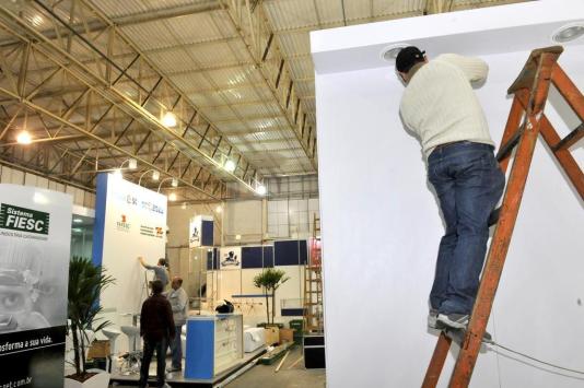 Na noite de domingo, profissionais montavam últimos detalhes da feira
