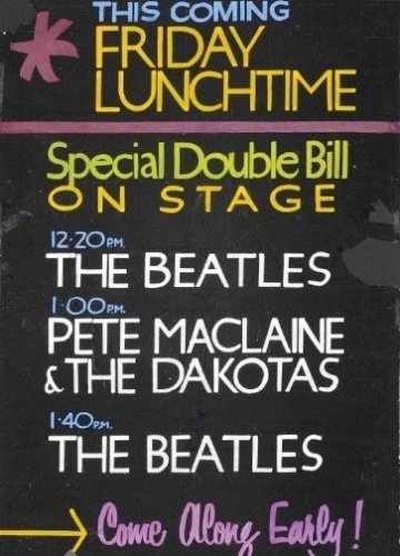 O cartaz anunciava que os shows foram realizados em dois momentos diferentes na hora do almoço na casa onde a banda começou sua carreira.
