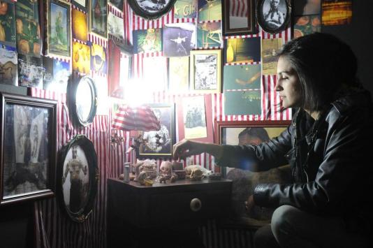 O trabalho recria um camarim para a artista Lucia Zarate, uma anã mexicana de circo que se apresentava no fim do século 19.