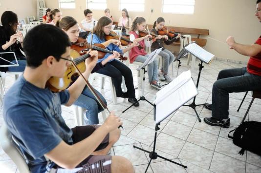 Os escolhidos participam dos ensaios, sempre aos sábados, das 9 às 11 horas, com a orientação de músicos com experiência. A partir de setembro, a orquestra irá se apresentar para a comunidade em quatro bairros de Joinville, onde a música erudita tem pouco alcance. No ano passado, o grupo tocou no Jardim Paraíso, Paranaguamirim, Vila Nova e Pirabeiraba.