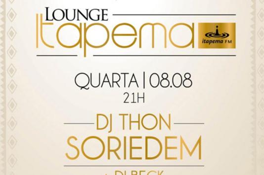 Quem conhece a programação da Itapema FM e é fã do Lounge Itapema, programa semanal voltado para a música eletrônica e comandado pelo DJ Thon Soriedem, não pode perder o novo evento promovido pela rádio: o projeto Lounge Itapema, realizado semanalmente no Dunn African Bar. A proposta é reunir amigos no clima descontraído do Lounge; e aproveitar os clássicos, as novidades e as tendências da cena da música eletrônica mundial. O DJ Thon Soriedem apresenta suas especialidades, o lounge music, o deep house e o soulful house.