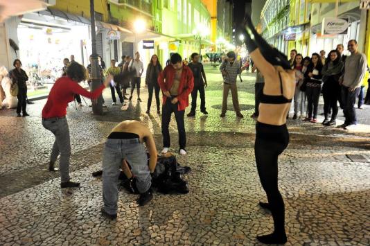 Centro de Florianópolis, 17h30min de quinta-feira. Em uma mesinha de metal um grupo joga baralho e ao fundo uma mulher canta Garganta, de Ana Carolina. Ela termina a música, se aproxima do "crupiê", que convida quem passa pela rua para jogar, e diz "obrigada, eu tenho filho pequeno, tenho que ir para casa" e sai correndo. Essa cena inusitada, na verdade foi uma das menos surpreendentes que aconteceram no Centro de Florianópolis, entre as ruas Deodoro, Felipe Schmidt,Trajano e Conselheiro Mafra.