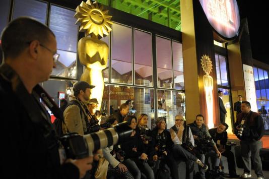Fotógrafos aguardam por celebridades em frente ao Palácio dos Festivais