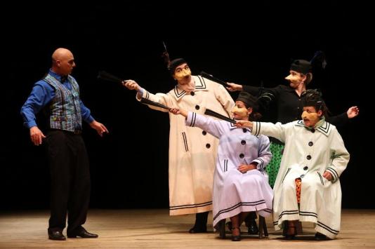 No palco, sete atores encenam cinco histórias utilizando diferentes técnicas de interpretação. Máscaras, jogos de sombras, quadro vivo (teatro com imagens estáticas, passando a impressão de que a cena está congelada), dublagem e atores sendo manipulados como marionetes entram em cena para a montagem da adaptação de viés cômico, escrita pelo diretor Luis Artur Nunes. Com foco no exagero e no caráter destemperado dos personagens, paixões e traições ganham um tom mais lúdico.