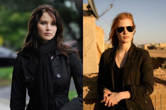 Jennifer Lawrence em "O Lado Bom da Vida" e Jessica Chatain em "A Hora Mais Escura"