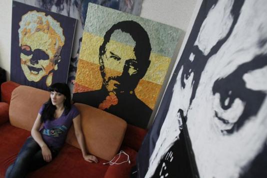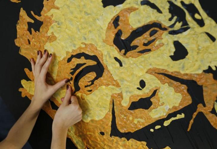 Pincel e tinta são coisas do passado para a artista Anna-Sofiya Matveeva. Ela utiliza chicletes mascados para criar suas telas com retratos de personalidades internacionais.