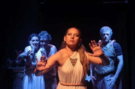 A montagem catarinense tem elenco formado por Chico De Nez, Jaime Baú, Regina Prates e Sulanger Bavaresco, diretora do grupo Dromedário. Sulanger ressalta que o Teatro da Armação foi adaptado pela produção da peça para parecer uma casa grega, o que fez com que alguns pontos fossem tomados pelo cenário. Com 36 lugares disponíveis para cada sessão, é importante reservar os ingressos com antecedência por telefone.