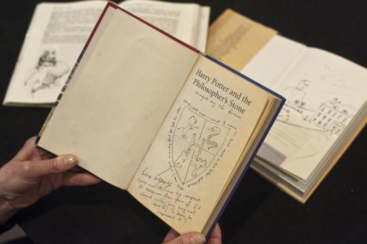 Um exemplar da primeira edição de 1997 do livro Harry Potter e a Pedra Filosofal, com anotações da autora, J.K. Rowling, foi vendido na terça-feira por 150.000 libras (227.000 dólares) em um leilão na Sotheby's de Londres. O livro contém anotações e 22 ilustrações originais de J.K. Rowling, autora da saga do jovem bruxo que vendeu milhões de exemplares em todo o planeta. Em 2007, um exemplar da mesma edição – sem as anotações da autora – foi arrematado por cerca de US$ 10 mil. O valor representa um recorde para um livro de um autor britânico. Ao lado do livro de Harry Potter também foram vendidas 50 edições originais de autores britânicos e da Commonwealth (Comunidade Britânica) por 439.000 libras.
