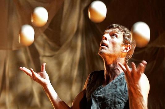 O saxofonista Pierre Diaz e o malabarista Martin Schwietzke dividem o palco