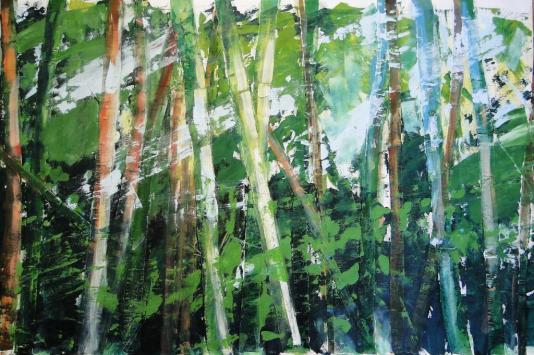 A mudança para Joinville marcou profundamente o processo de criação e o olhar da argentina Verónica Murphy. Aqui, a artista passou da tinta a óleo para as colagens cobertas pela tinta acrílica e a paisagem local contaminou a paleta de cores. Em sua primeira exposição individual, "De Verde para Verde", que abre nesta quarta-feira na Associação de Artistas Plásticos de Joinville, ela evidencia essas mudanças e as chama de resumo de sua estada no Brasil.