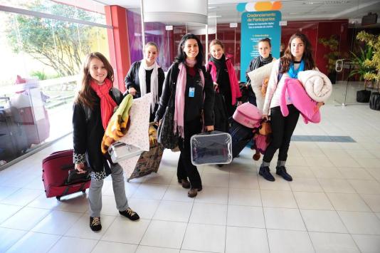 As bagagens, ainda em mãos, davam conta de que o período delas em Joinville será longo. A preparação para os onze dias em que o grupo ficará alojado incluía colchões, travesseiros, roupas de cama, muitos agasalhos, lanches e chás para aguentar o frio noturno. Até uma torradeira tem um lugarzinho na mala para garantir um café da manhã improvisado.