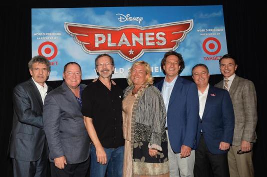 Executivos da Disney e da Pixar na première do longa-metragem "Aviões", realizada em 5 de agosto no Teatro El Capitan, em Hollywood