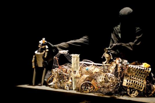 Na adaptação, em vez de pessoas, quem entra em cena são bonecos feitos pelos dois atores. Junto com eles, outros três artistas dão vida aos personagens feitos com lixo industrial. Júlio e Nazareno também dirigem a montagem, em parceria com Valmor Níni Beltrame.