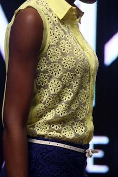 As rendas duelaram com outras tendências na passarela do evento. Vestidos, calças e blusas ganharam as mais diferentes formas, como neste vestido azul klein – outra cor que não nos abandona. Para reforçar a principal marca do verão, mais uma mistura divertida entre as estampas. A overdose de informações em alta.