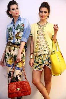 Esta imagem define o verão 2014 apresentado no Donna Fashion Iguatemi. A união perfeita entre diferentes estampas, do tropicalismo das bananas ao listrado contemporâneo, foi o grande destaque. Neste caldeirão, entram ainda as cores fortes como o amarelo e o verde. Mais Brasil, impossível. Quer mais? Abuse dos maxibrincos.