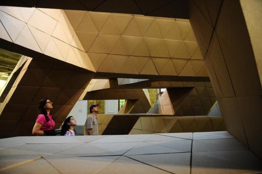 A Bienal tem opções na medida para as crianças. Uma delas é a Bat Cave, ou Caverna do Morcego, escultura de Tony Smith formada por peças de papelão e localizada no Margs. Como a montagem das 4,8 mil partes da estrutura deixa espaços vazios internos que permitem a circulação por dentro dela, a imaginação se deixa levar.