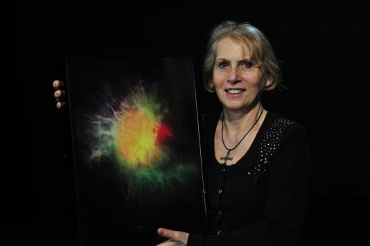 Na foto, a artista gaúcha Clara Figueira durante montagem da exposição