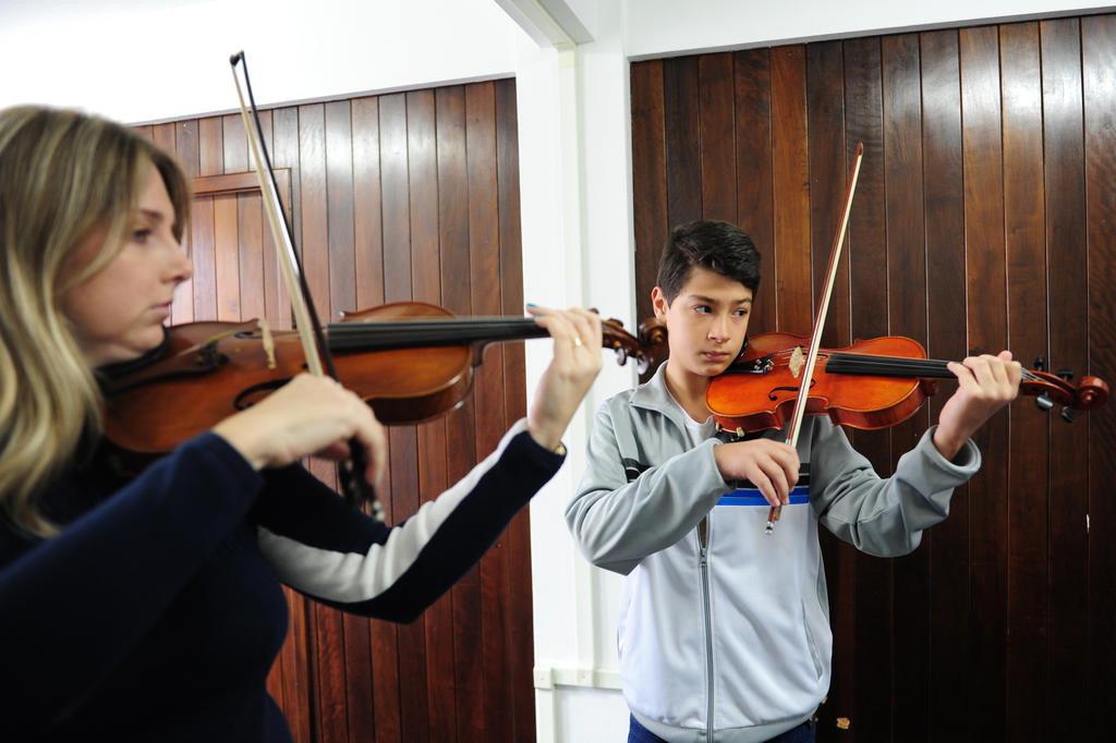 Foi assim com Simone Schliewert de Paiva, professora de violino desde 2007 na Escola de Música Villa-Lobos, na Casa da Cultura. Hoje com 33 anos, ela iniciou aos oito no mesmo local onde leciona. Agora, a violinista – que também é psicóloga – repassa aos 27 alunos atuais tudo o que absorveu durante sua formação no espaço. Um deles é Vinícius Aguiar, 12 anos.