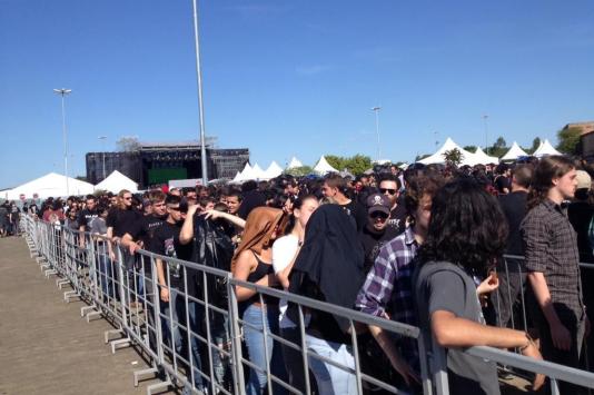 Nem o sol e a temperatura de mais de 25ºC intimidaram o exército de vestes pretas. São os fãs de Black Sabbath, que aguardaram desde o início da manhã a abertura dos portões no Estacionamento da Fiergs, em Porto Alegre, para assistir ao show logo mais, às 22h. O acesso foi liberado pouco antes das 16h, hora que era prevista.