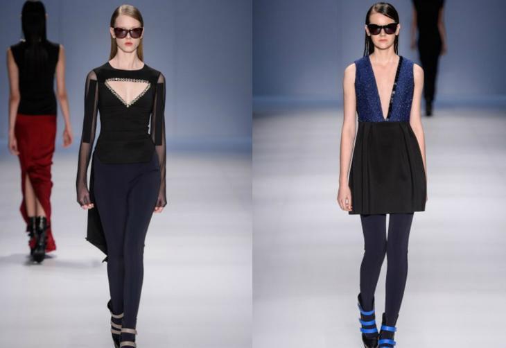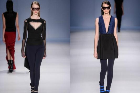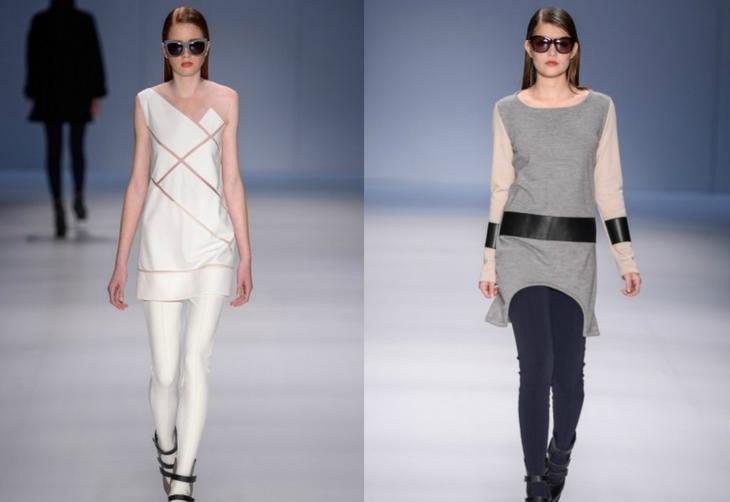 Transparência e geometria, tendências que já vimos no inverno passado, seguem em cartaz. Os vestidos curtos fazem par com as leggings pretas e com sapatos pesados de tiras grossas. Entre os highliths da coleção, os pulôveres que misturam tricô e couro e os casacos que adicionam à dupla a textura da lã.