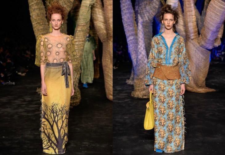 Com uma cenografia que reproduzia o sertão, o estilista mineiro estampou a terra erodida do solo e o formato retorcido das árvores nas roupas, produzidas com muito couro, renda e texturas. Destaque para os vestidos superleves arrematados com cintos de couro poderosos.