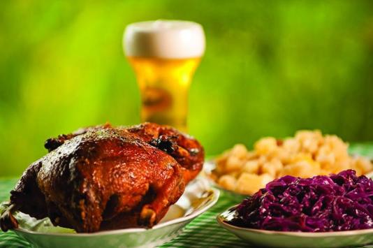 Típico da culinária alemã, o marreco recheado com repolho roxo é uma das receitas do livro