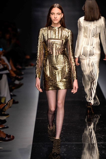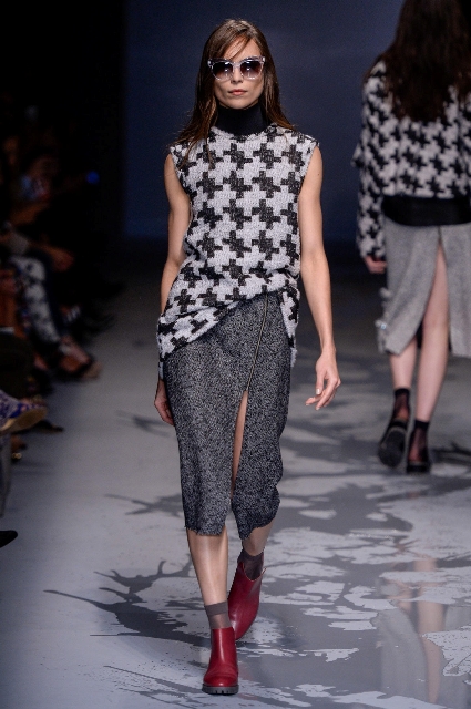 No inverno, as estampas florais cedem espaço aos geométricos, com muito xadrez, listrado e pied de poule. Nos moletons de Juliana Jabour o geométrico puro ganhou espaço em aplicações metalizadas e nos vestidos anos 1920 bem ao estilo Gatsby de Reinaldo Lourenço ele foi composto em fitas verticais douradas ou prateadas. Puro glamour!