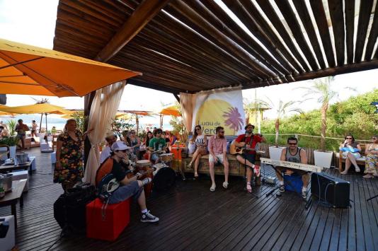 O sol também prestigiou o primeiro dia de gravações e garantiu uma bela paisagem a praia de Jurerê Internacional. De forma muita descontraída o primeiro programa foi gravado com muita boa música e brincadeiras provocadas pelo apresentador Marcos Piangers.
