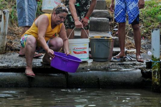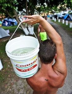 A proprietária Angelita está buscando água com balde no Canal da Barra para tentar resolver pelo menos a situação dos banheiros, que estão em "estado caótico". Ela disse que precisou devolver R$ 900 para clientes que decidiram sair do camping por causa do problema de água.