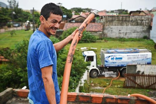 Um dos moradores da Favela do Siri a receber a água foi o instalador de piscinas Adinaldo dos Santos Ribeiro