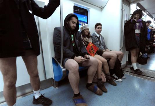 Dia 12 de janeiro foi comemorado em 60 cidades, de 25 países, o 13º No Pants Subway Ride. O encontro que ocorre desde 2002, tem como ideia principal andar de metrô sem utilizar as calças. Neste ano, grandes metrópoles como Nova York, Buenos Aires e São Paulo participaram do evento.