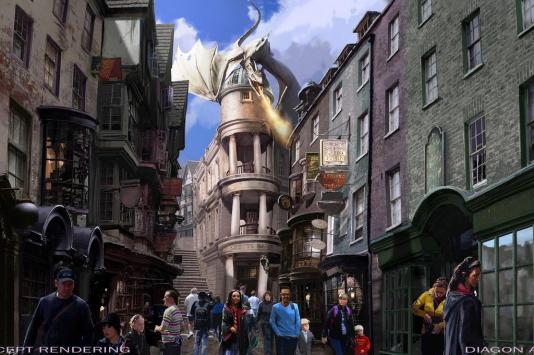 O Universal Orlando iniciou um fenômeno global quando abriu a atração temática The Wizarding World of Harry Potter - Hogsmeade no parque Islands of Adventure em 2010. Essa área inclui o clássico castelo de Hogwarts, que apresenta a atração Harry Potter and the Forbidden Journey, além do vilarejo de Hogsmeade. O parque The Wizarding World of Harry Potter - Diagon Alley ficará localizado no segundo parque temático do Universal Orlando, o Universal Studios, e oferecerá novas experiências com base nas áreas típicas de Londres, do Diagon Alley (Beco Diagonal) e da Knockturn Alley (Travessa do Tranco).