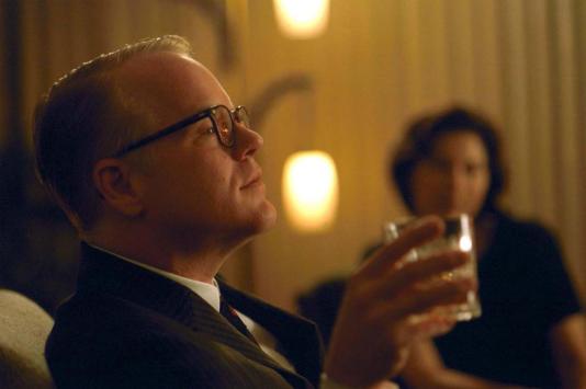 Philip Seymour Hoffman no papel que lhe rendeu um Oscar, como Truman Capote no filme "A Sangue Frio"