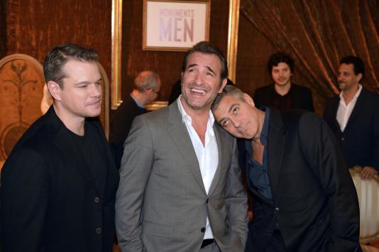 Matt Damon, Jean Dujardin e George Clooney em uma apresentação do filme em Paris, no início do mês