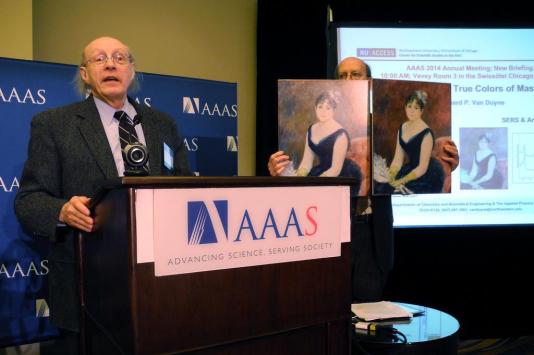 Professor de química Richard Van Duyne, da Northwestern University, descreve as técnicas científicas que reavivam os tons de vermelho em uma pintura de Renoir durante reunião da American Association for the Advancement of Science em Chicago, em 13 de fevereiro
