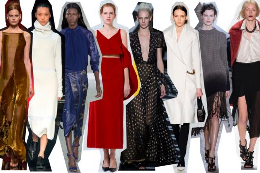 Como visto na Semana de Moda de Nova York, não é nesta temporada que as franjas vão receber um descanso. Elas aparecem principalmente em saias com barras recortadas, que conferem bastante movimento às peças. Sempre presente no inverno, o couro aparece revisitado em modelagens estilo alfaiataria.