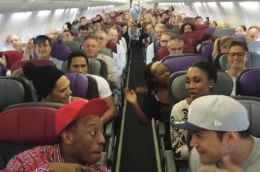 O flashmob aconteceu na Austrália, durante um voo de Brisbane para Sidney.