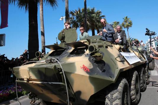 A Croisette foi palco neste domingo de um acontecimento que só Cannes pode proporcionar: Sylvester Stallone, Arnold Schwarzenegger, Harrison Ford, Mel Gibson, Antonio Banderas e Wesley Snipes desfilaram em tanques de guerra para promover o lançamento da sequência Os Mercenários 3, superprodução que tem o time de atores no elenco.