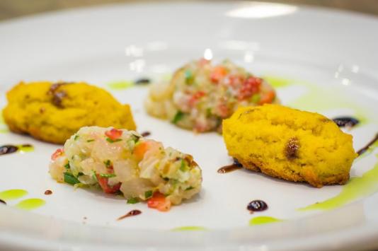 1. Em uma tigela misture todos os ingredientes, monte o tartar e sirva imediatamente