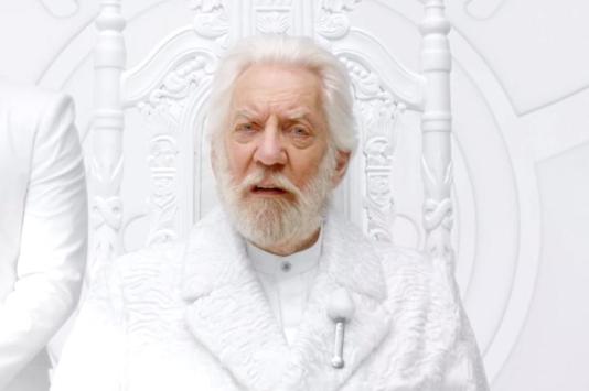 No vídeo, o Presidente Snow aparece durante um comunicado, mas ele não aparece sozinho.
