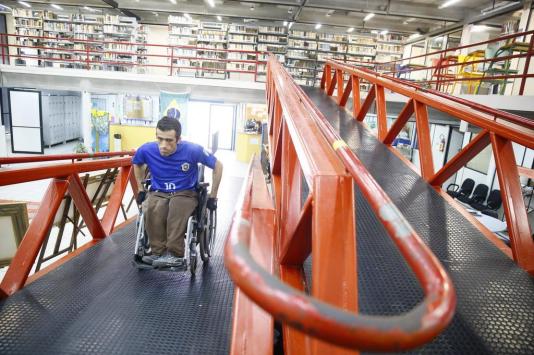 Muitos comemoram, mas Patrick Martins, 33, se envaidece. O cadeirante pode dizer que trabalha na biblioteca mais acessível do Estado. Há oito anos, ele é o arquivista da Barreiros Filho.